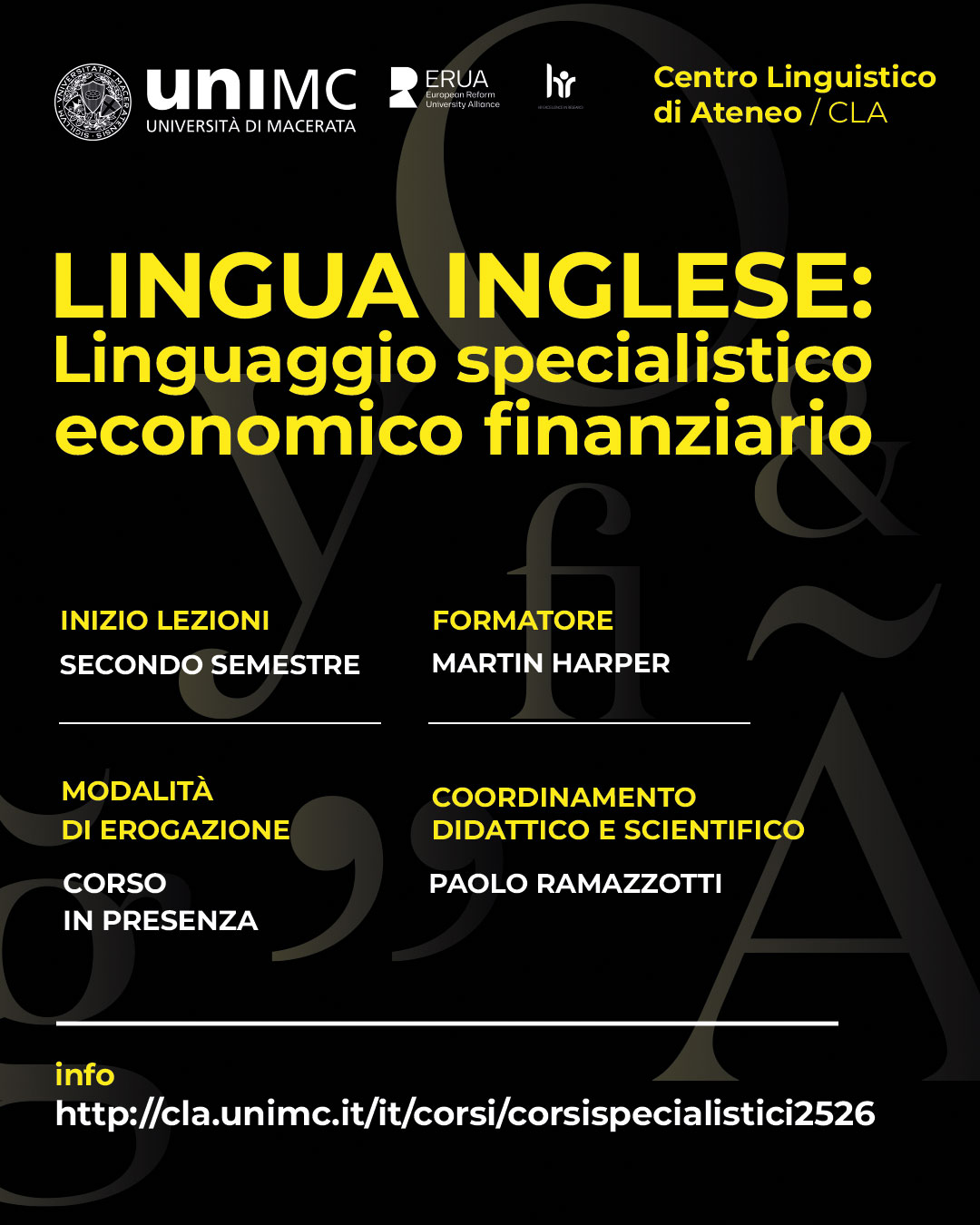 Contenuti del corso "Lingua inglese: Linguaggio specialistico economico finanziario": questo corso esaminerà la terminologia e la grammatica relative al mondo aziendale, all’economia internazionale, alla finanza e alle banche. Appropriato per quegli studenti che hanno già acquisito un livello di inglese pari almeno a B1.