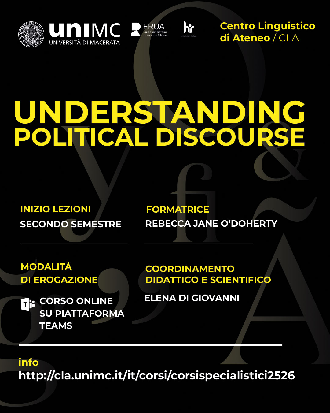 Contenuti del corso "Understanding political discourse": What is Boris Johnson up to when he says: ‘Humanity are 5-1 down on the climate crisis.’? How was Shakespeare able to make the word “honourable” drip with sarcasm? What is “The Hill” slam poet Amanda Gorman alluded to? Why do mere words rouse people to act? Or cause them to turn away in disinterest? What do we need to know to understand when we are being manipulated? And why is this important in our times?